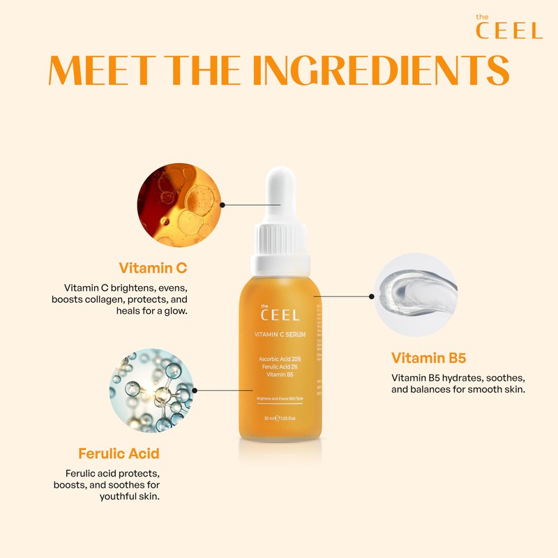The Ceel The Ceel Vitamin C Serum, Facial Serum with 20% High Dose Vitamin C, Ferulic Acid, Vitamin E, Glutathione, Facial Care Against Dark Spots and Wrinkles, 30 ml (1.00 fl. oz)