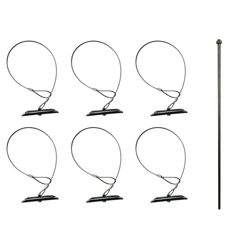 - 6 pcs of 6" Steel Anchor with 33"-1/8" steel cable on top and one Carbon Steel Drive Rod