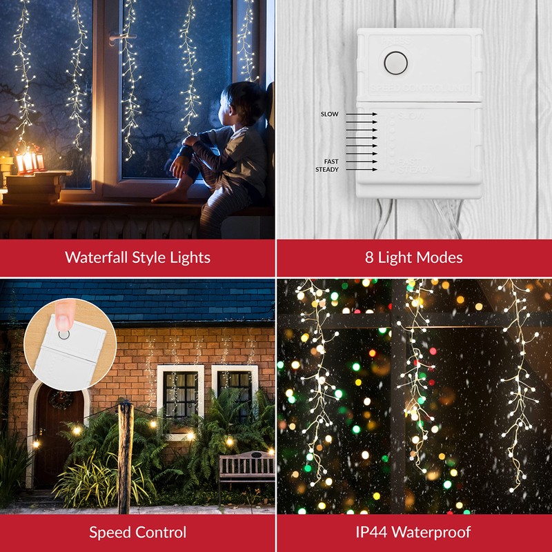 The Christmas Workshop 70439 Waterfall Curtain Chaser Lights / 240 Warm White LEDs / 8 Light Modes / Speed Control / Indoors & Outdoors Suitable / 5m Lead Wire / IP44 Waterproof Lights
