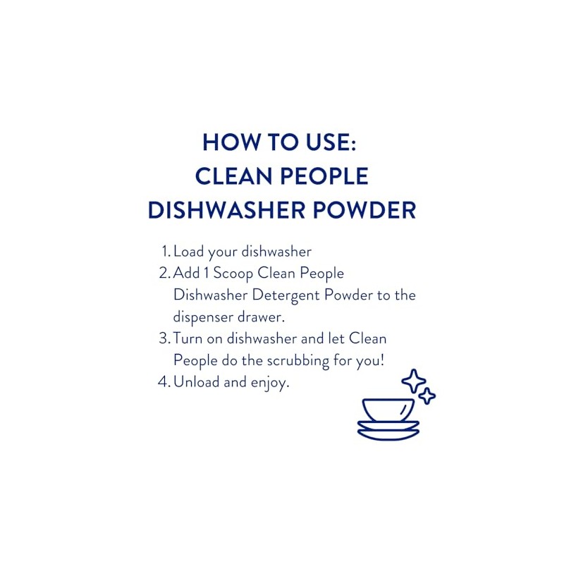- SPARKLING CLEAN WITHOUT HARSH CHEMICALS: Powered by plant-derived enzymes, Clean People's Dishwasher Detergent Powder naturally cut through grease & stuck-on food stains to leave dishes sparking with zero residue, streaks, or other mineral build-up. Safe, simple, effective, Clean People's products free from ethoxylates and cruelty-free.