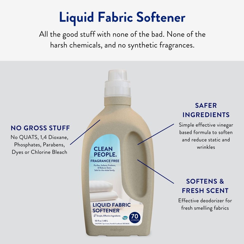 The Clean People Liquid Fabric Softener - Softens & Removes Static Cling - Vegan (50 Fl Oz, Fragrance Free)