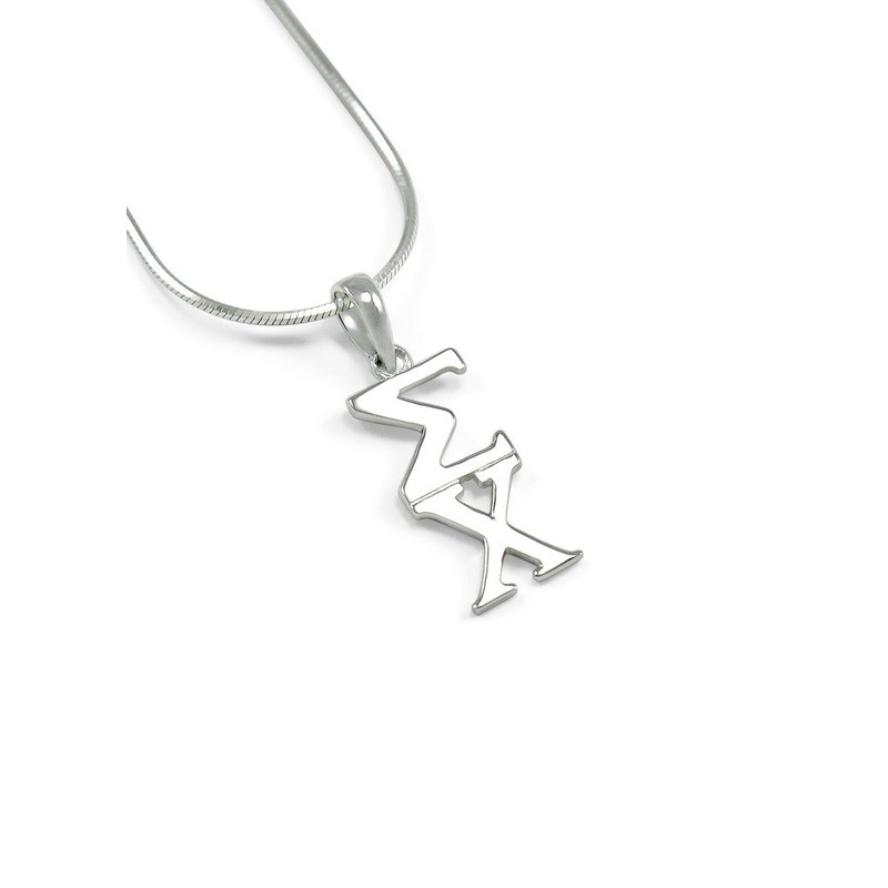 A sweet and simple sterling silver Sigma Chi lavaliere pendant with Sigma Chi Greek letters. Finished with rhodium for a brilliant, lasting shine. A classic design.