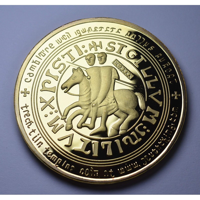 The Commemorative Coin Company Pair of Large Masonic Knights Templar 24ct Gold Coins with Red & Blue Enamel. Freemasonry/Masons/Freemasons Lodge/Order Capsule