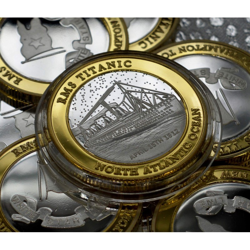 The Commemorative Coin Company RMS TITANIC, WHITE STAR LINE Fine Silver & 24ct Gold 'Dual Metal' Commemorative in Capsule. Olympic Class Ocean Liner, 1912, London to Southampton