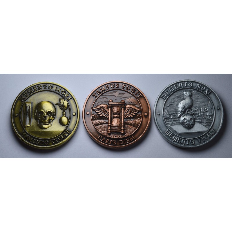 - The Commemorative Coin Company Trio Of Memento Mori Vivere Reminder Coins In Capsules. Life Death Stoic Reflection Stoicism. Antique Gold Copper Nickel