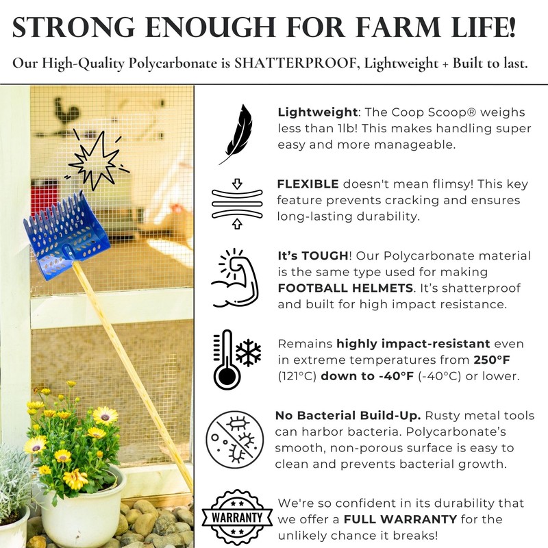 The Coop Scoop® Original 2-in-1 Chicken Poop Scooper & Rake – Durable Sand Sifting Litter Shovel for Chicken Coops & Small Farm Animals