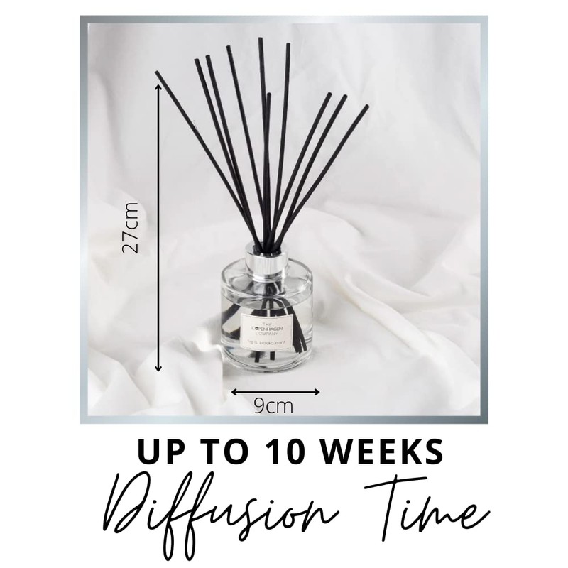 The Copenhagen Company Luxury Reed Diffusers for Home | Aromatherapy Scented | 10 Weeks Long Lasting Fragrance | 10 Natural Rattan Reeds | The Copenhagen Company - Fig & Blackcurrant (100ml)