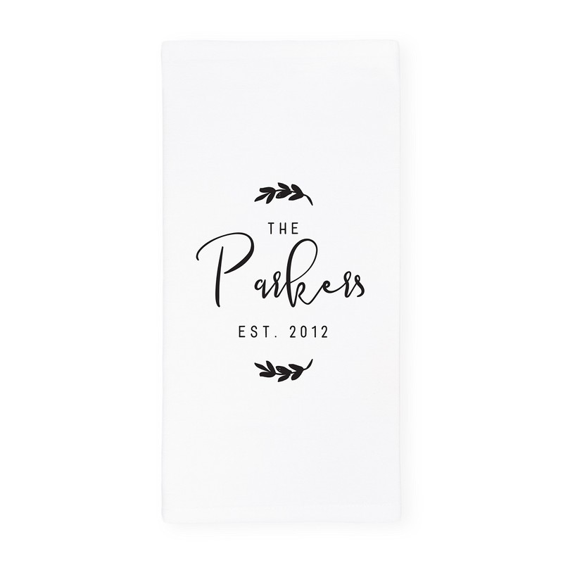 The Cotton & Canvas Co. Personalized Family Last Name and Date Soft and Absorbent Kitchen Tea Towel, Flour Sack Towel Dish Cloth