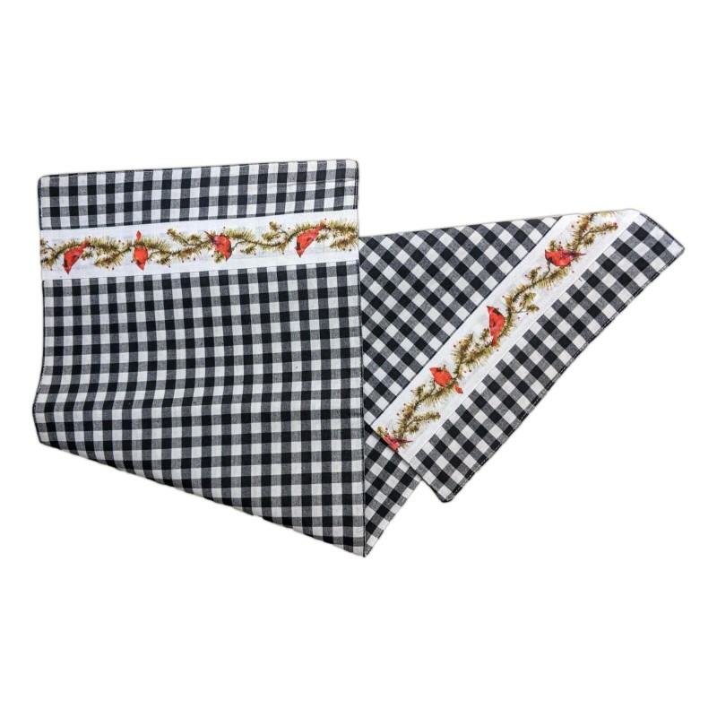 The Country House Collection CARDNAL 'N' PINE Black Check Table Runner, 13" x 54", by The Country House