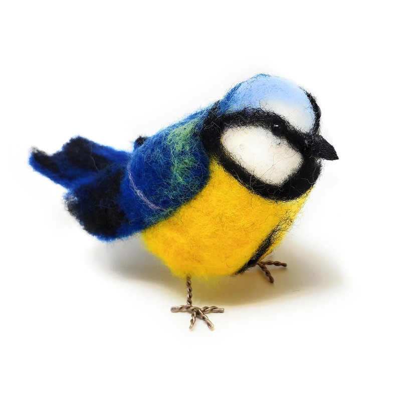 The Crafty Kit Company British Birds Blue Tit Needle Felting Craft Kit for Beginners Including Corriedale Wool, Needles and Instructions
