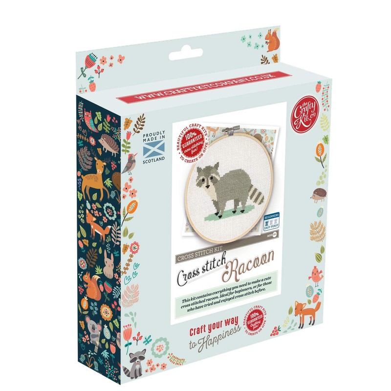 The Crafty Kit Company Racoon DIY Cross Stitch Craft Kit for Beginners – Made in The UK