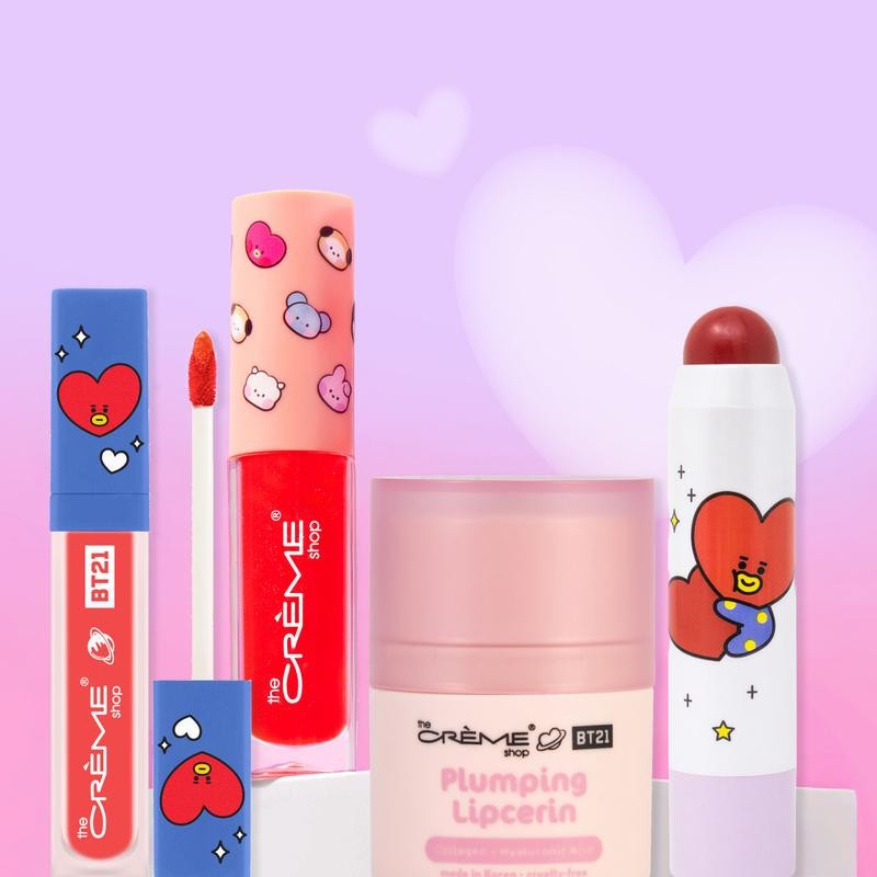 The ultimate lip bundle for every beauty lover! This set features the BT21 Plumping Lipcerin for a hydrated, fuller pout, the Tata Universtain Lipstain for bold, long-lasting color, the versatile Tata Lip & Cheek for a natural flush, and the Starstruck Tinted Jelly Lip Oil for a glossy, tinted finish. Perfect for creating endless looks while keeping your lips nourished and vibrant!