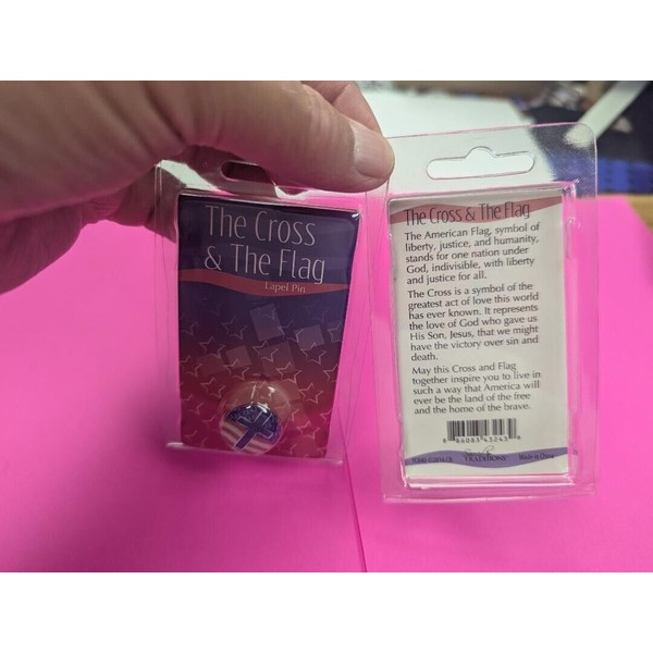 THE CROSS & THE FLAG Poem Wallet Prayer Card & FLAG & CROSS Lapel Pin - NEW