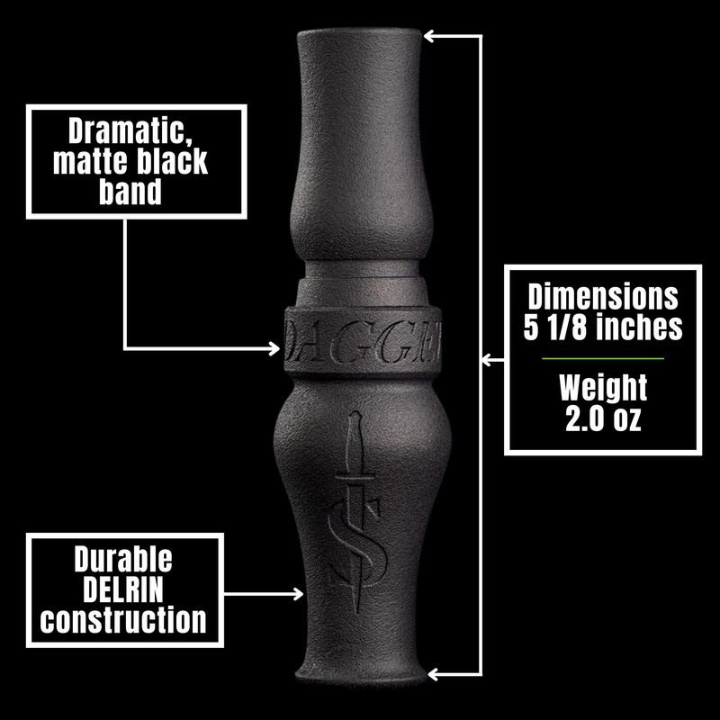 • Become part of the Slayer family by adding the Dagger goose call to your lanyard. Available in black, featuring customized Dagger barrel.