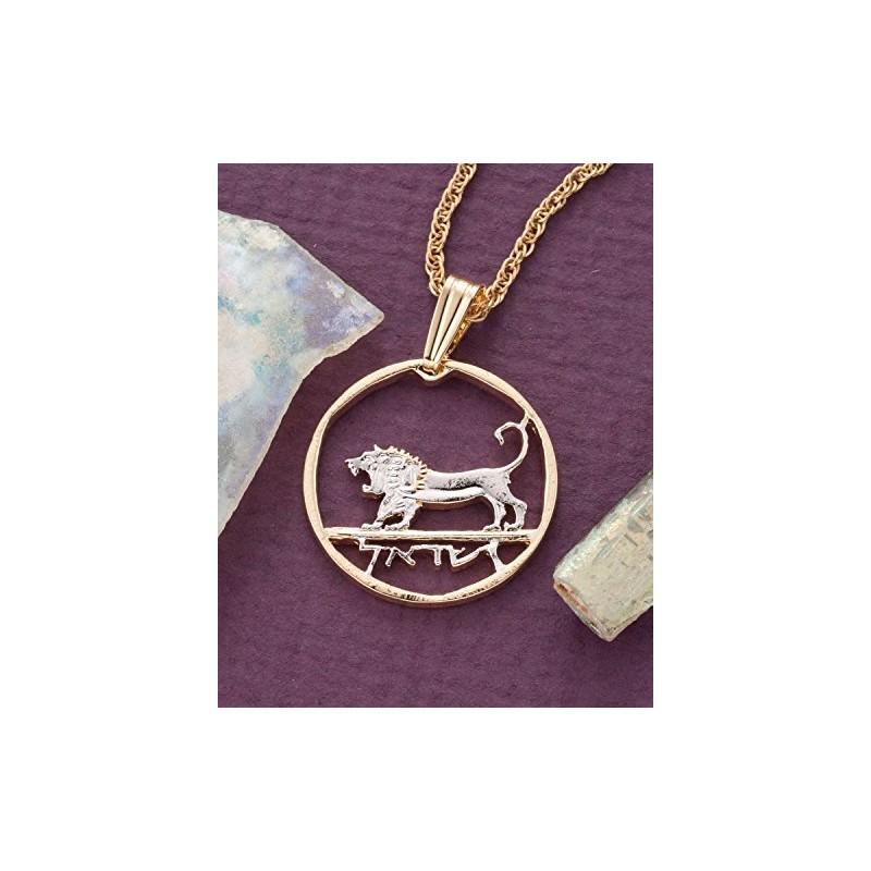 The Difference World Coin Jewelry Lion of King David Pendant & Necklace, Israel 1/2 Shegel Hand Cut