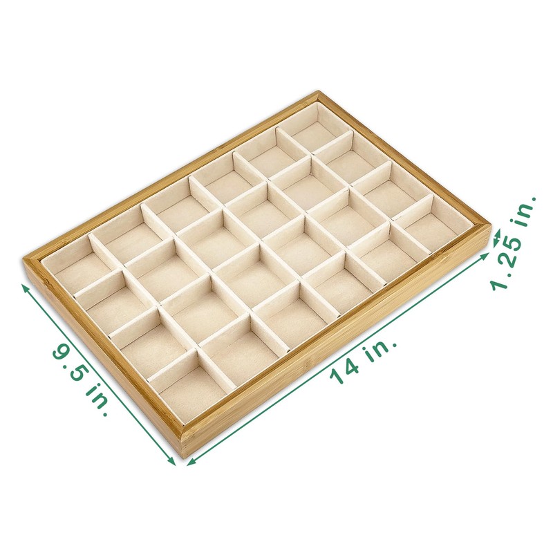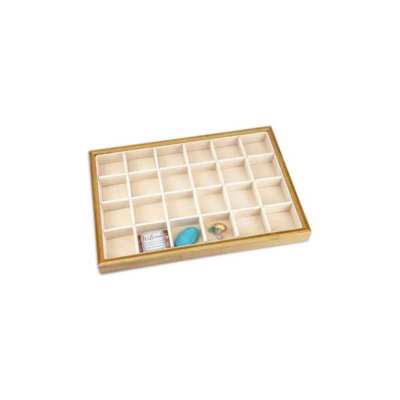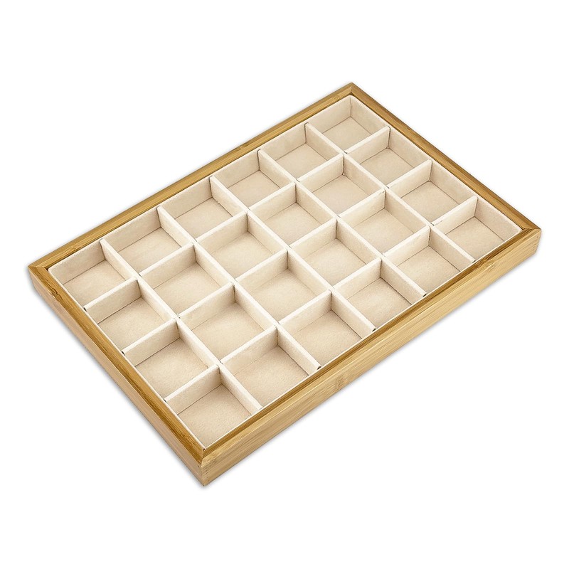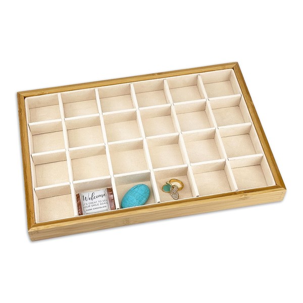 The Display Guys - Stackable Jewelry Tray and Organizer - for Drawers, Dressers, Store Display (24 Compartments, Bamboo Suede)