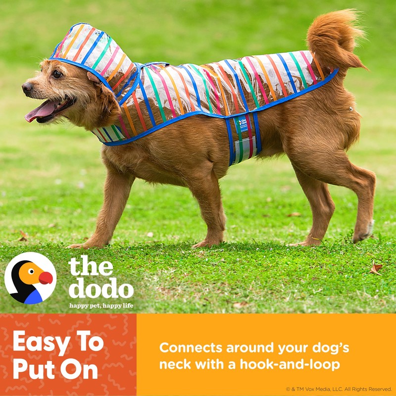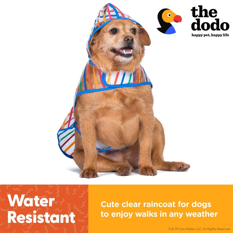The Dodo Clear Rainy Days Striped Raincoat for Dogs, Size Small; Water Resistant Dog Raincoat with Hook-and-Loop Drape Closure, Easy Clean PVC Material