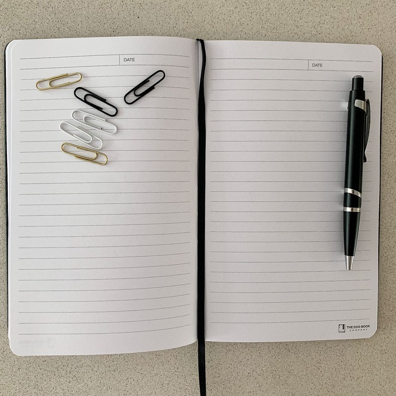 - SOPHISTICATED DESIGN INSPIRED BY DOGS. Debossed image of a dog on the front cover and a patterned design of dog silhouettes on the flyleaf. Straight spine for stability, tight binding so pages don’t fall out, and rounded corners that add to the elegant look.
