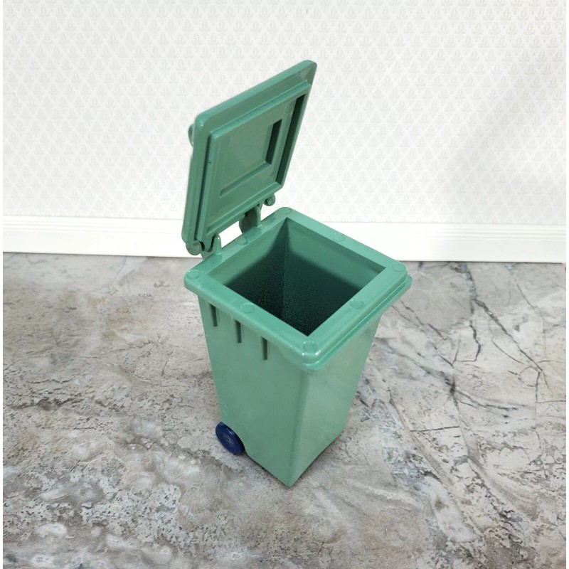 The Dolls House Emporium Dollhouse Green Garbage Can Wheelie Bin Opens 1:12 Scale Modern Miniatures