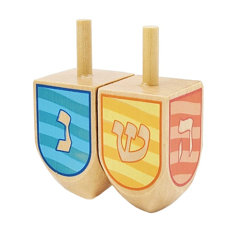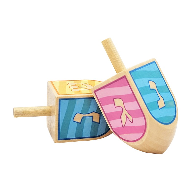 The Dreidel Company Let's Play Dreidel The Hanukkah Game 2 Multi Colored Extra Large Hand Painted Wood Dreidel (Style 3, Pack of 2)