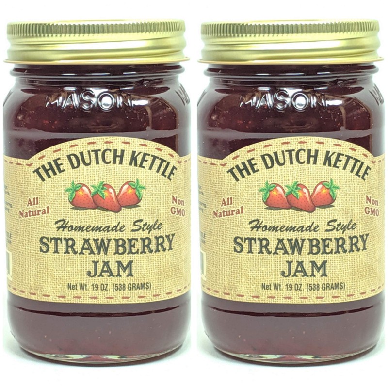 The Dutch Kettle Amish Homemade Style Seeded Strawberry Jam 2 - 19 oz Reusable Jars All Natural Non-GMO No Preservatives