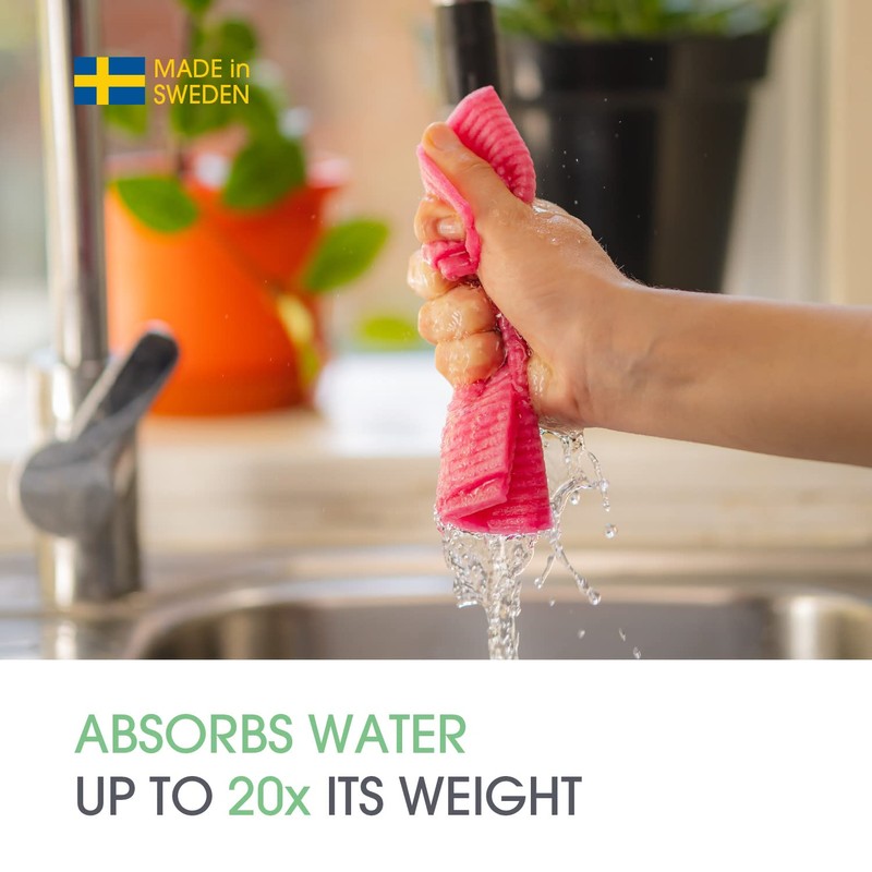 • HIGHLY ABSORBENT- Authentically made in Sweden with cloth sourced from renewable forests, these premium swedish towels combine sustainability and convenience. Each cloth is highly absorbent - up to 20 times the cloth's weight.