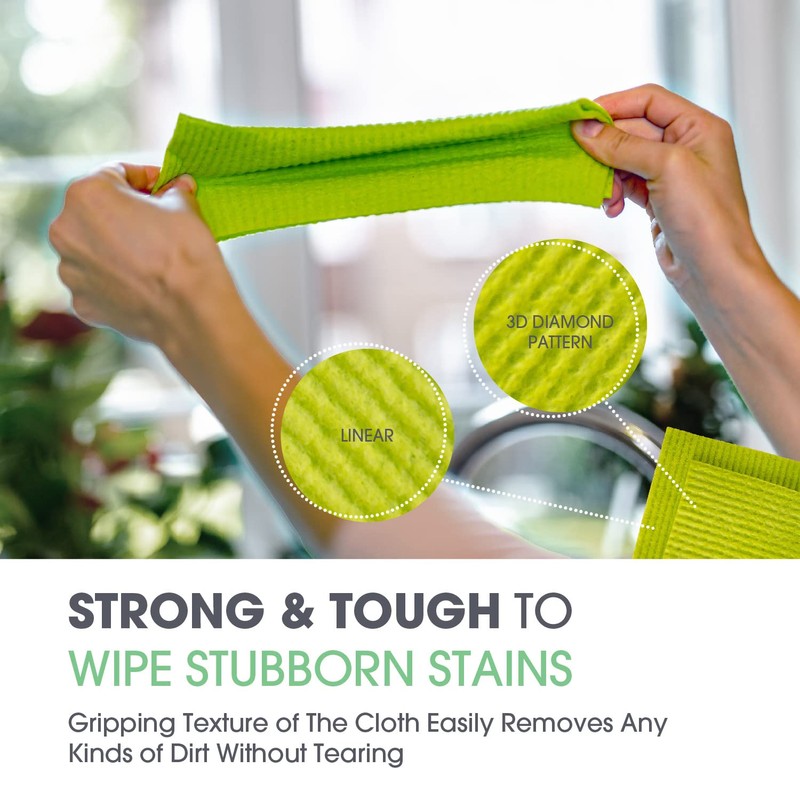 • VERSATILE- An all-in-one tool for any kitchen, this product offers a wide range of cleaning capabilities for a multitude of surfaces. These swedish dish cloth are especially valued for its ability to replace the need for costly kitchen towels, saving you both money and time when it comes to keeping your home clean.