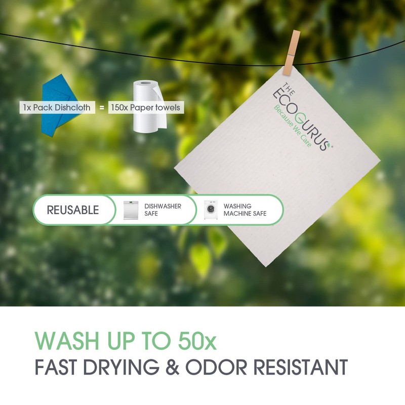 The EcoGurus Swedish Dishcloths for Kitchen, Highly Absorbent Natural Swedish...