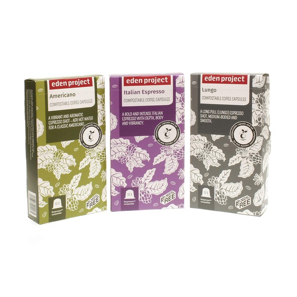 THE EDEN PROJECT Plastic Free Nespresso Compatible Coffee Capsules | Italian Coffee Selection Pack | Home Compostable - Climate Neutral | Italian Espresso, Lungo and Gusto Espresso (30)