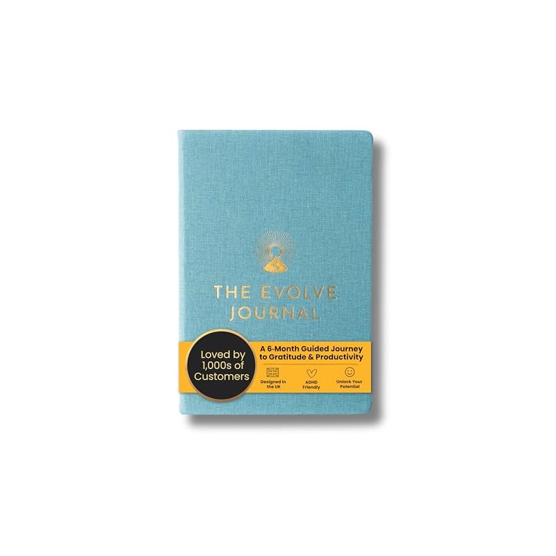 THE EVOLVE JOURNAL, 6-Month Guided Gratitude and Productivity Journal, ADHD Friendly, UK Design, Beige (Teal)
