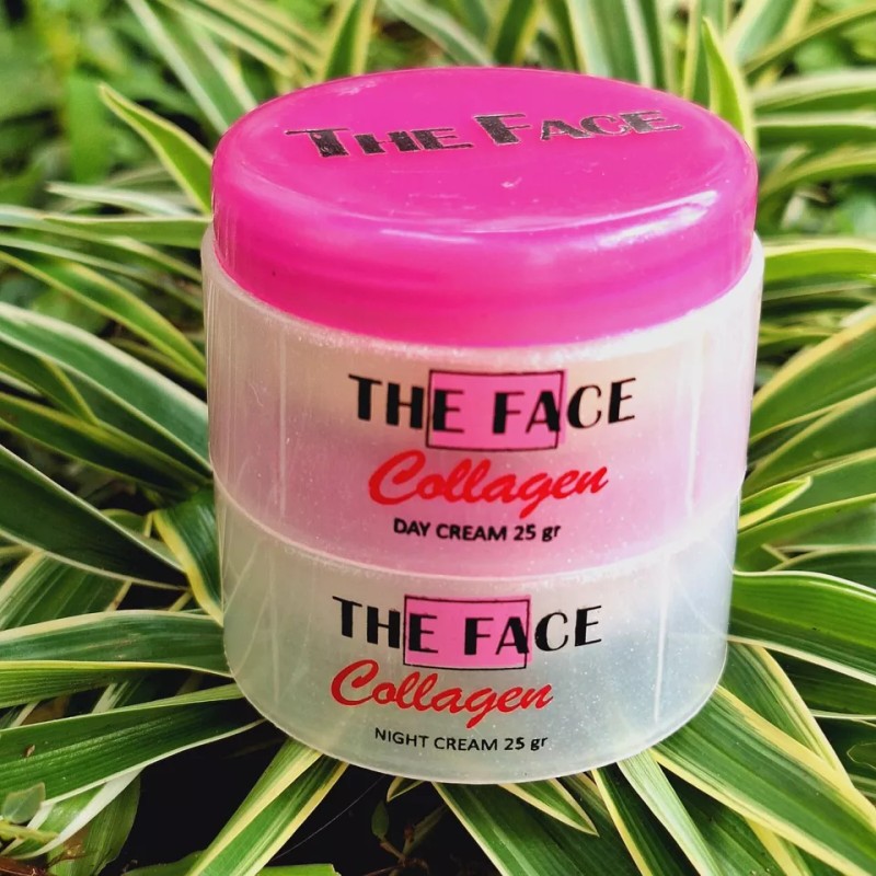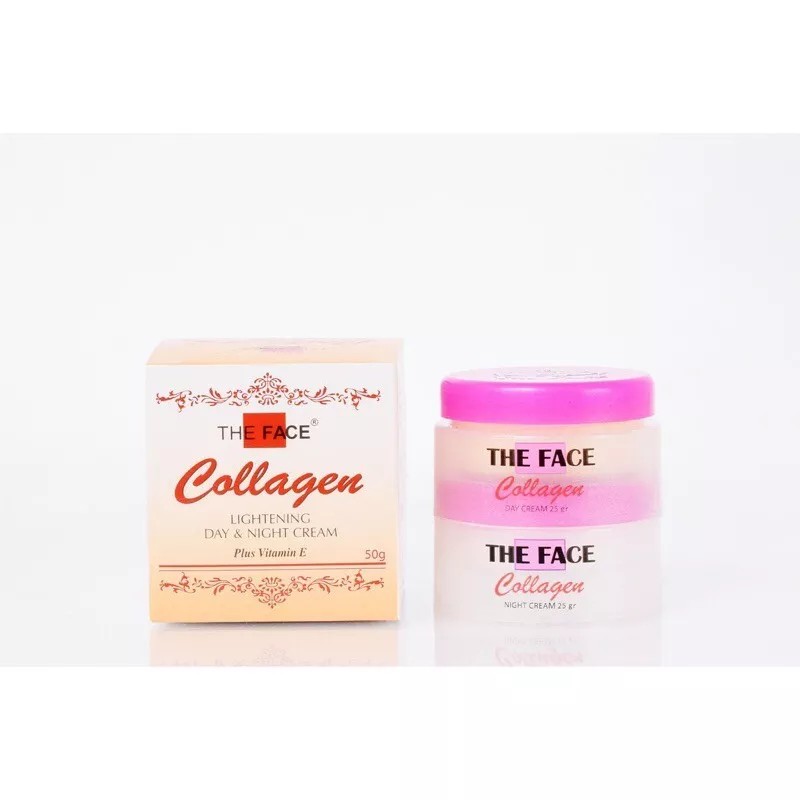 The collagen face lightening cream includes a day cream and a night cream, both 25 g.
