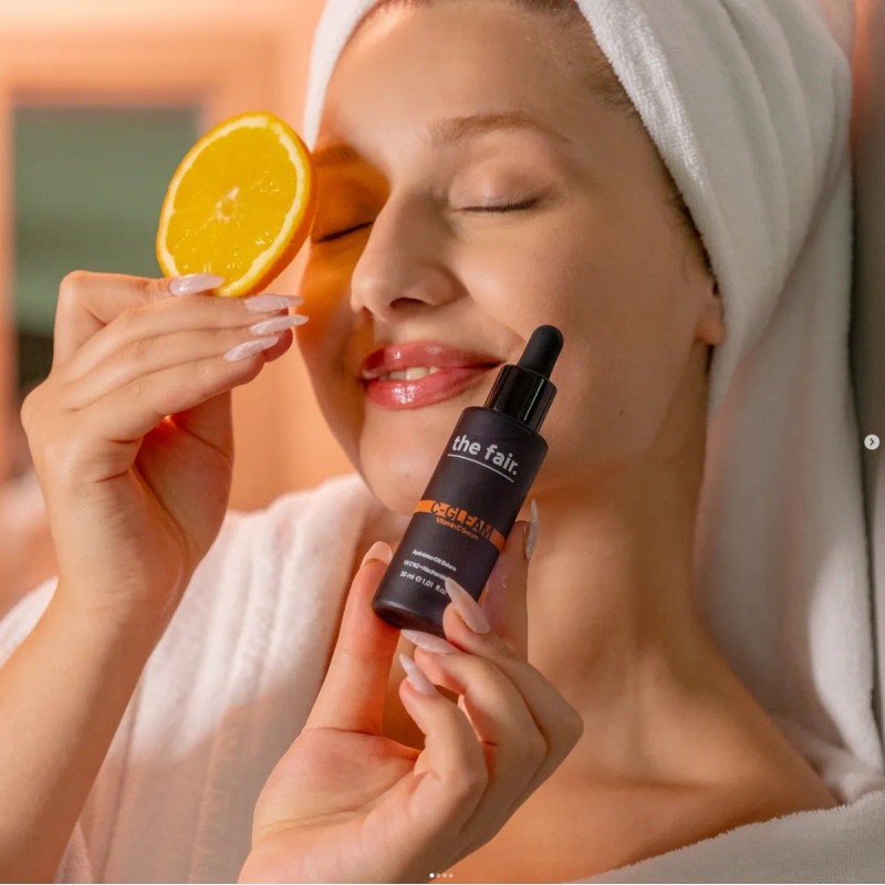 SUERO ILUMINADOR CON VITAMINA C C-GLEAM – 30 ML El suero C-Gleam de The Fair está enriquecido con vitamina C pura para revitalizar la piel, mejorar su textura y ofrecer un efecto luminoso natural. Su fórmula avanzada está diseñada para combatir manchas, reducir poros y equilibrar el sebo. BENEFICIOS PRINCIPALES: Cuidado intensivo de poros: Ayuda a mantenerlos limpios y menos visibles, mejorando la suavidad del rostro. Acción antimanchas: Unifica el tono de la piel y reduce la aparición de manchas oscuras. Regulación del sebo:
