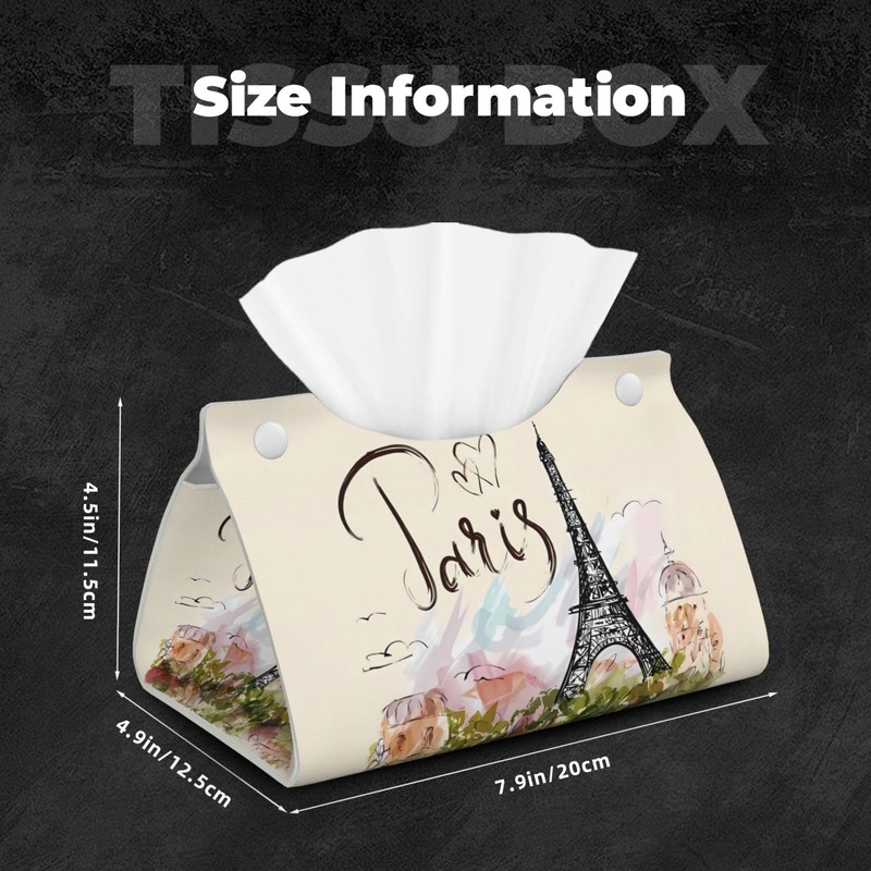 The Famous Paris Eiffel Tower Tissue Box Cover Rectangle PU Leather Facial Tissue Case Paper Holder Organizer for Decor Bathroom Vanity Countertop Bedroom Dresser Night Stand Desk Tabletop Car Office