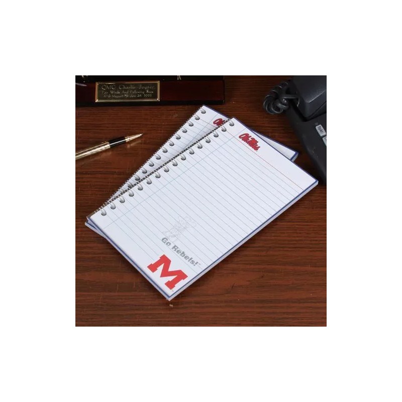This is a 2 pack Ole Miss Writing Memo Note Pad.  This 2 pack note pad contains 50 sheets per pad and displays bright Ole Miss logos and graphics.   Measures 5" x 8"