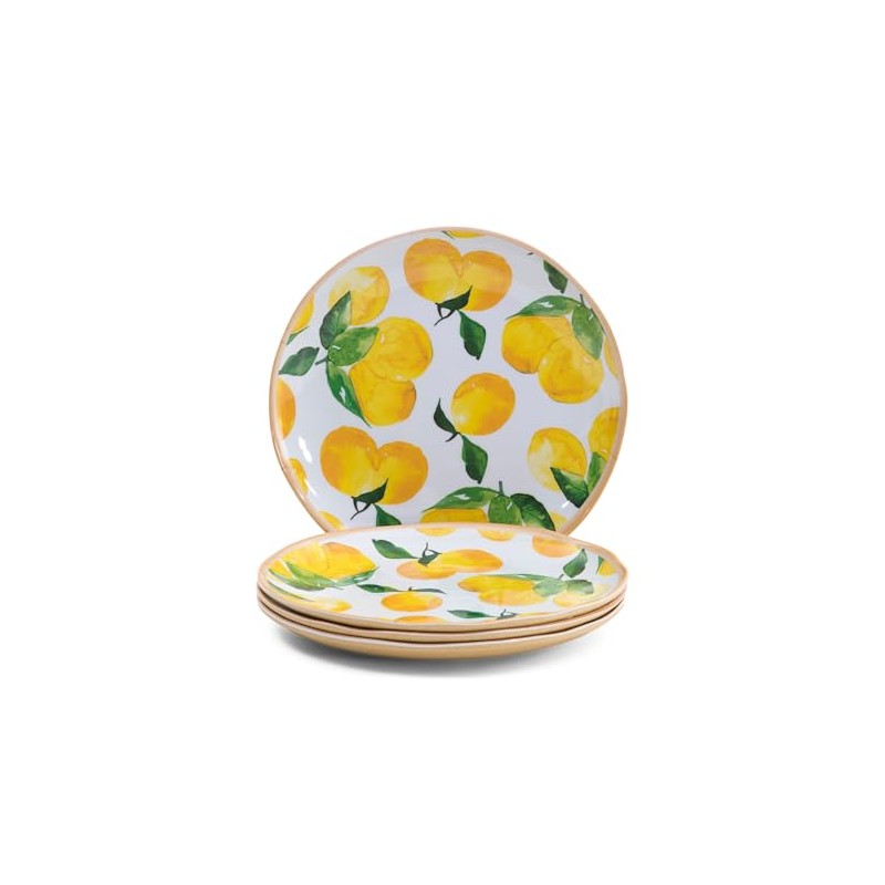 The Farmhouse by Rachel Ashwell Melamine Lemon Design for Daily Use, Lightweight and Break-Resistant Indoor and Outdoor Use (Lemons, Salad Plates, Set of 4)