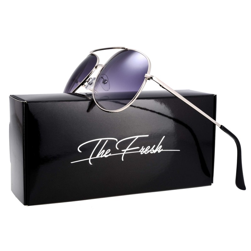 The Fresh Classic Large Metal Frame Aviator Sunglasses - Exquisite Packaging (Silver(Spring Temple), Gradient Grey)