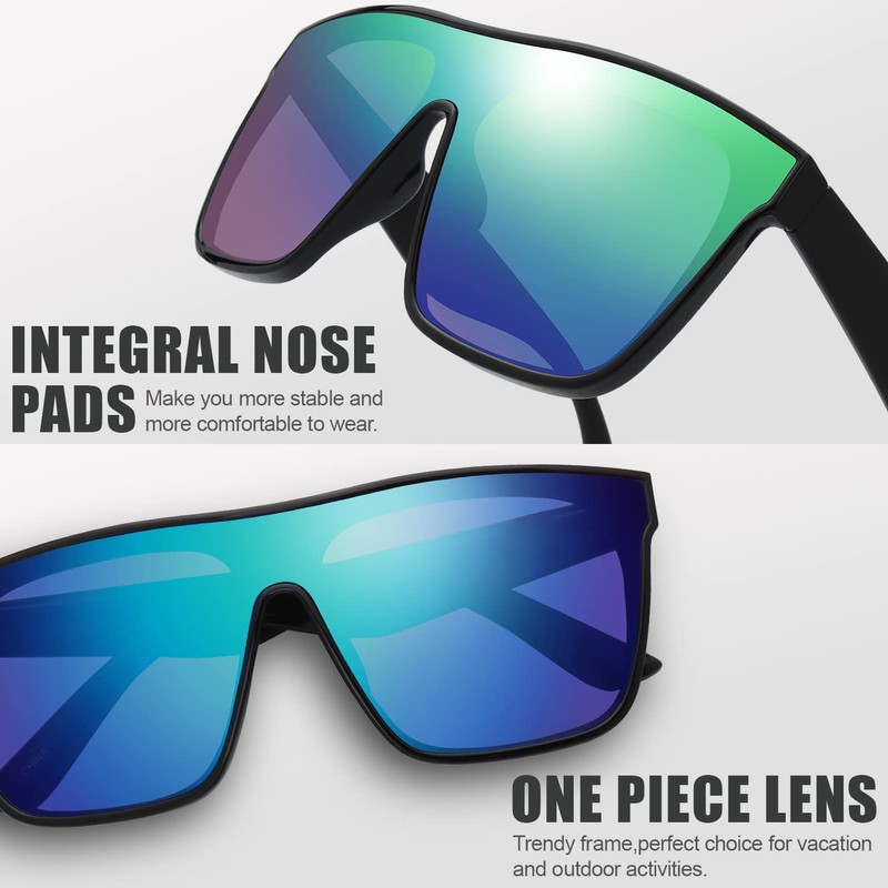 - Design Feature – one piece shield style, lightweight frame, UV400 polarized lens, a saddle bridge, solid metal hinges, exquisite temples.