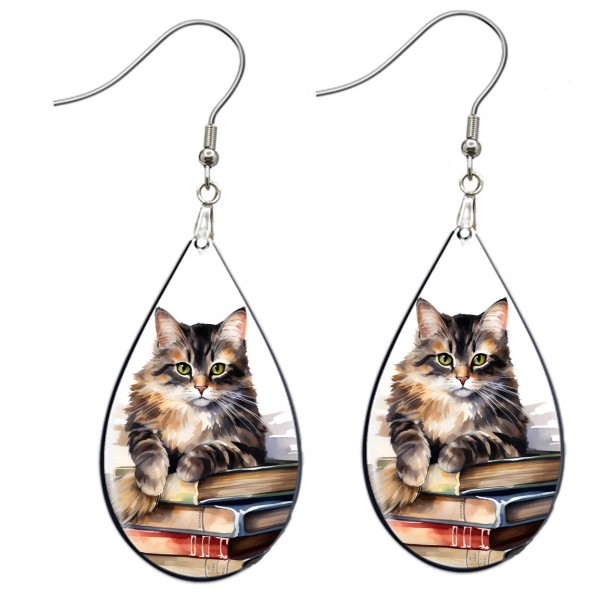the fun things Maine Coon Cat Napping on Books Earrings NO PLATING NO TARNISHING Teardrop