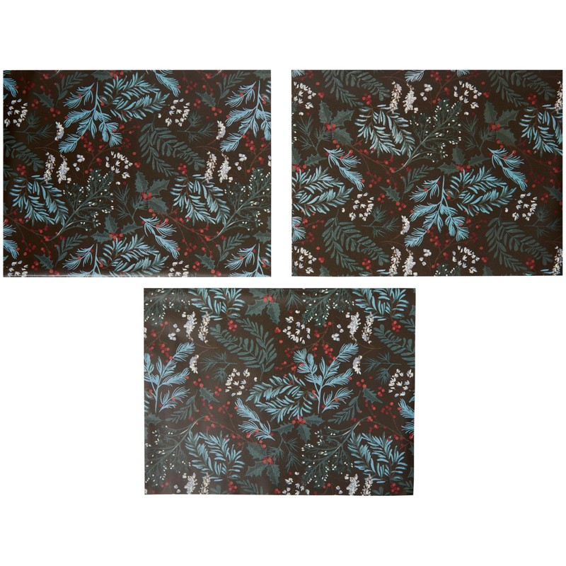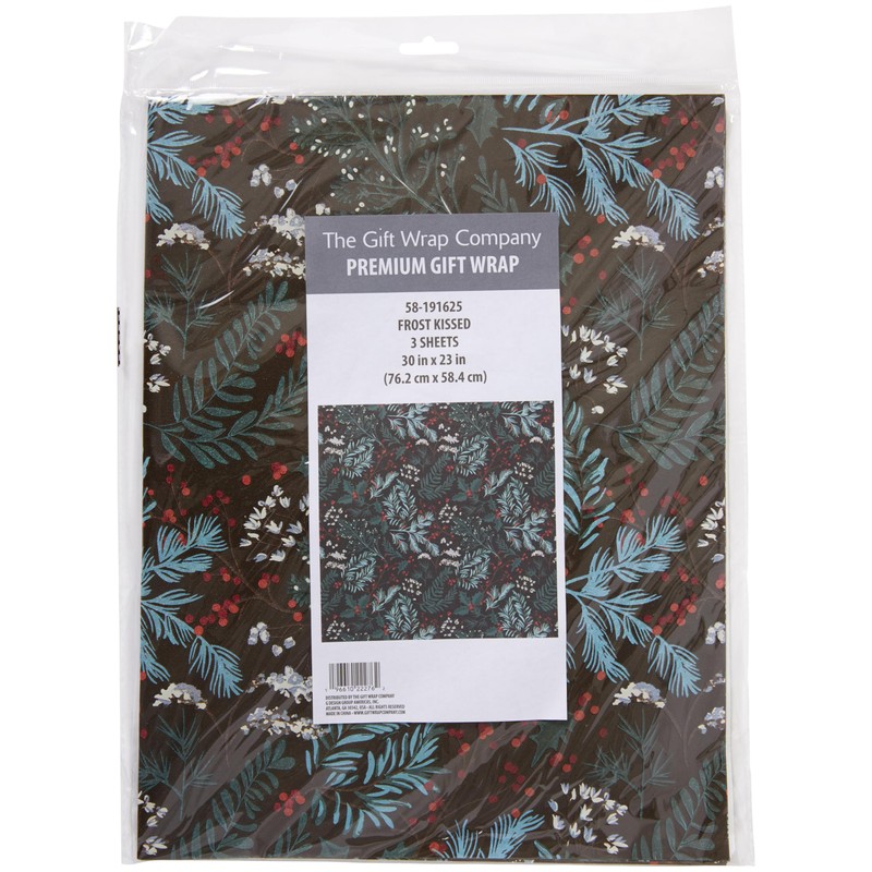 The Gift Wrap Company 58-191625 Frost Kissed Flat Gift Wrapping Paper Sheet Set, 30" x 23", Black Multicolor, 3 Pieces