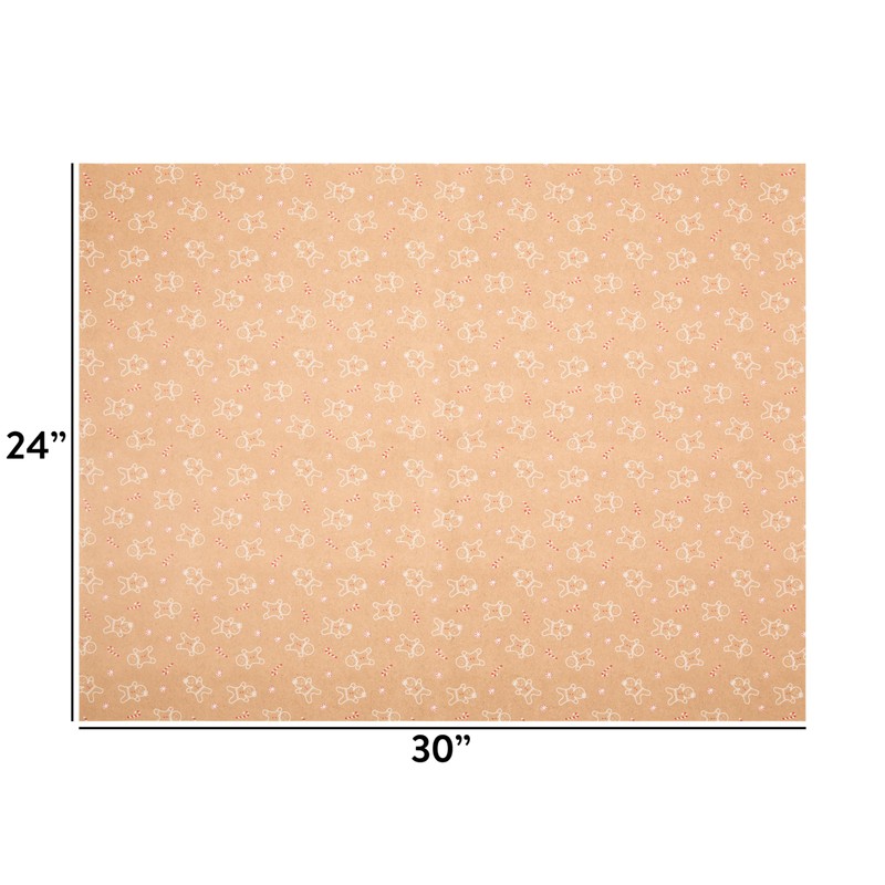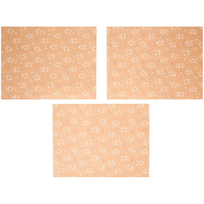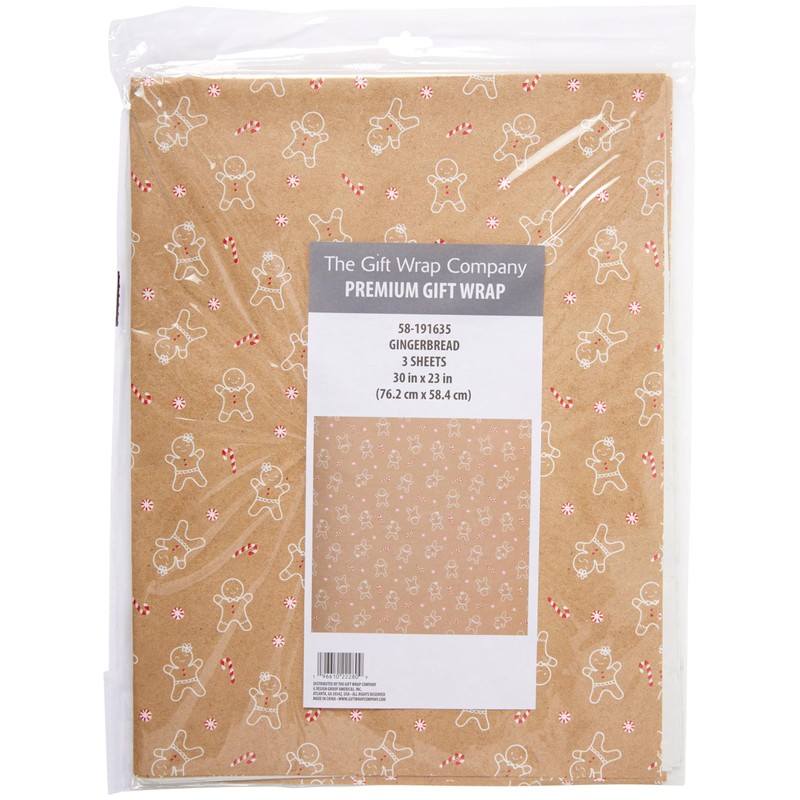 The Gift Wrap Company 58-191635 Gingerbread Holiday Flat Gift Wrapping Paper Sheet Set, 30" x 23", Tan Multicolor, 3 Pieces