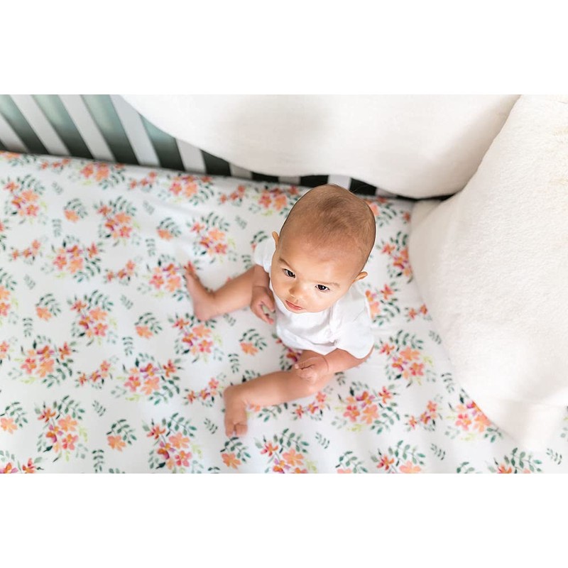 The Gilded Bird Organic Cotton Fitted Cot/Cotbed Sheet, Fits 120cm x 60cm and 140cm x 70cm, Jersey Cotton, Nursery Bedding - (Pretty Stems)