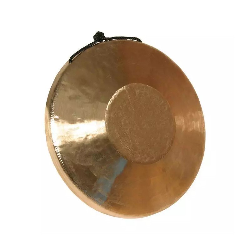 The 12" Tiger Gong has a descending pitch when struck. In Chinese opera, gongs of various sizes are used to coordinate the action as well as the position and personality of each character as the plot develops. Traditionally made, each Tiger Gong requires multi-directional lathing and hand hammering to reach its final form. A product of true craftsmanship each Tiger Gong has a dynamic range, projection, and resonance.