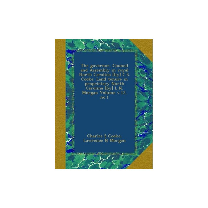The governor, Council and Assembly in royal North Carolina [by] C.S. Cooke. Land tenure in proprietary North Carolina [by] L.N. Morgan Volume v.12, no.1