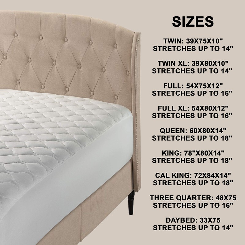 - ''' TOP QUALITY FABRIC – Polyester & Cotton Top for Utmost Sleep Comfort, Hypoallergenic and Breathable, Great for Allergy Sufferers, Nice & Tight Stitching Pattern#||# FITTED & QUILTED - Supports Your Body While Protecting Your Mattress From Stains, Dirt, Dust And Dander. No Plastic Noise When Moving Around - Knitted Skirt#||# CUSHIONY FILLING – Our Grand Basic Cover Will Make Your Mattress Comfortable To Lay On and Will Add Comfort To Your Bed. It Holds Up Well. It Is Not Waterproof#||# GENEROUS SIZING & DEEP POCKETS - Fits Large Mattress Perfectly. It Fits Over Gel Foam Toppers and Memory Foam Toppers & Even Though Extra-Large Mattress#||# The Most Common Use For A Daybed Is In A Spare Room Or Home Office. While It Can Be Used As A Sofa Or Chaise Lounge In These Rooms, It Is Often Added To Accommodate Guests.... Daybeds Are Also Often Used In A Child's Room For Sleeping.'''