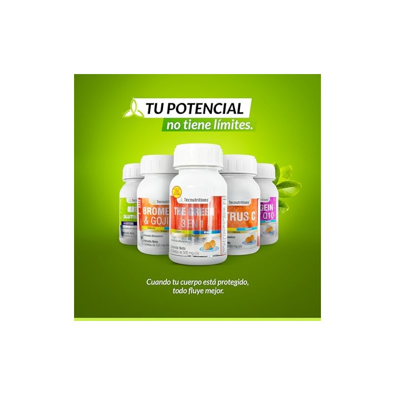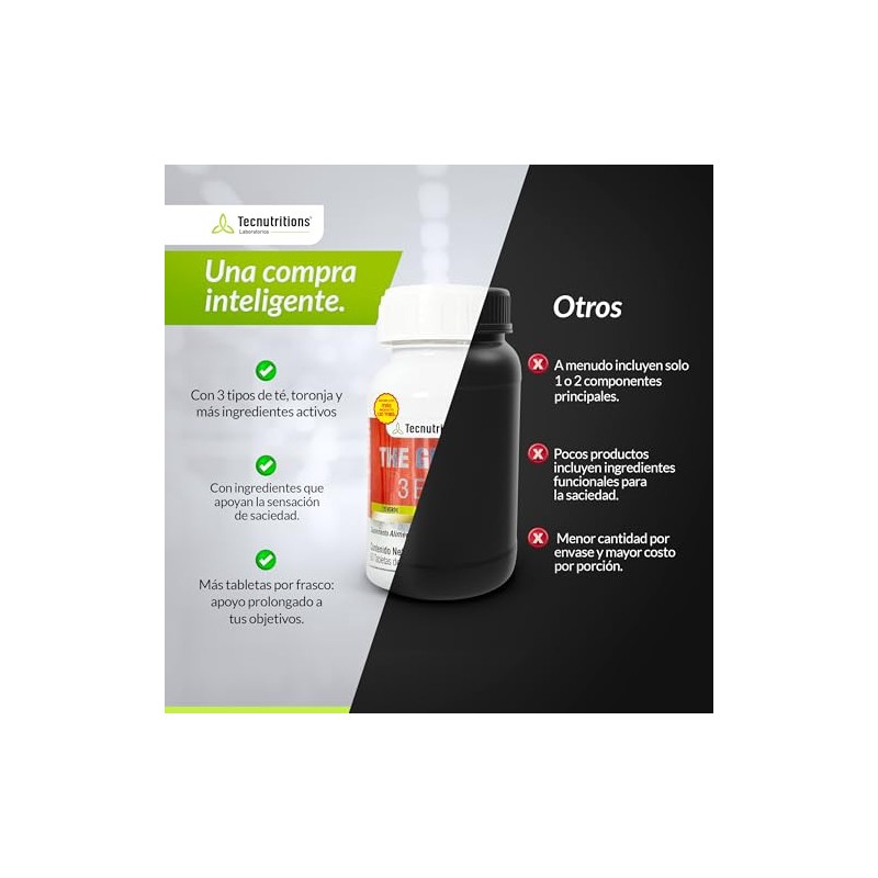 🌟 ⭐ The Green 3 en 1 - Suplemento Natural para Apoyo Metabolico y Energia - Te Verde, Blanco, Rojo, Toronja, Jengibre, Nopal, L-Carnitina y Vitaminas B - Presentacion con 120 Tabletas de 500 mg c/u. TECNUTRITIONS. ⭐ 🌟
