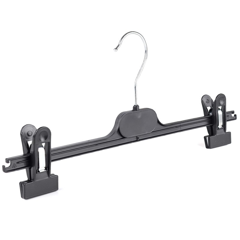 The Hanger Store 12 Strong Black Plastic Hangers With Clips, For Trousers & Skirts