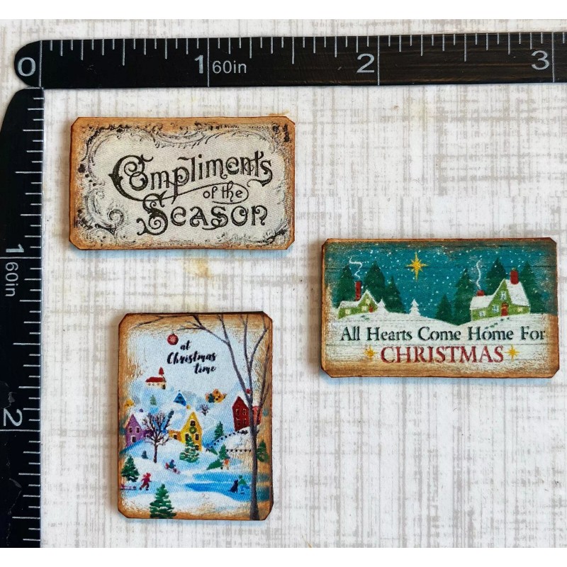 Dollhouse Miniature SET of 3 discounted SIGNS hearts at christmas time GREETINGS