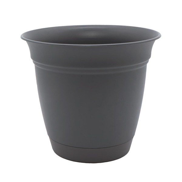 The HC Companies 6 Inch Eclipse Round Planter with Saucer - Indoor Outdoor Plant Pot for Flowers, Vegetables, and Herbs, Warm Gray