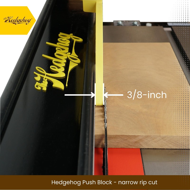 - Safely make those skinny cuts - the body of the Hedgehog Push Block is only 3/8-in wide to easily pass between the spinning saw blade and fence.