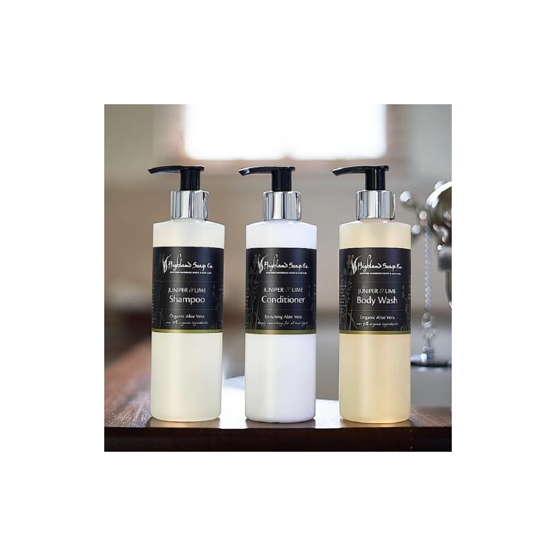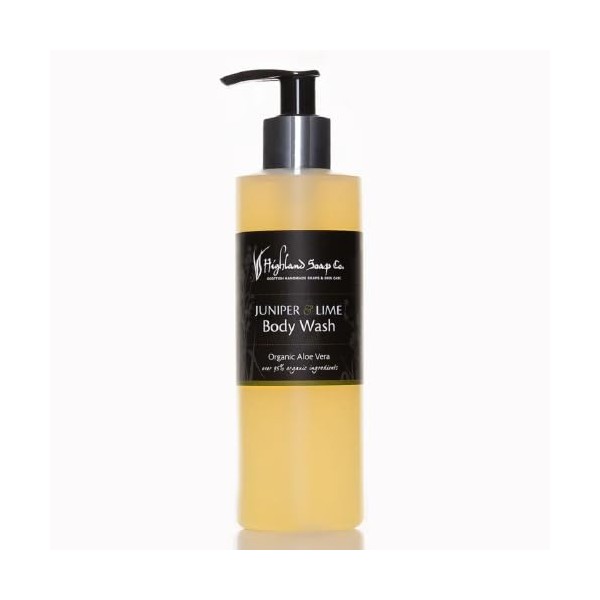 - Ein Duschgel mit biologischer Aloe Vera aus der Juniper & Lime Serie von The Highland Soap Company